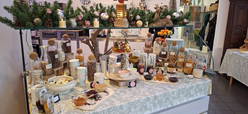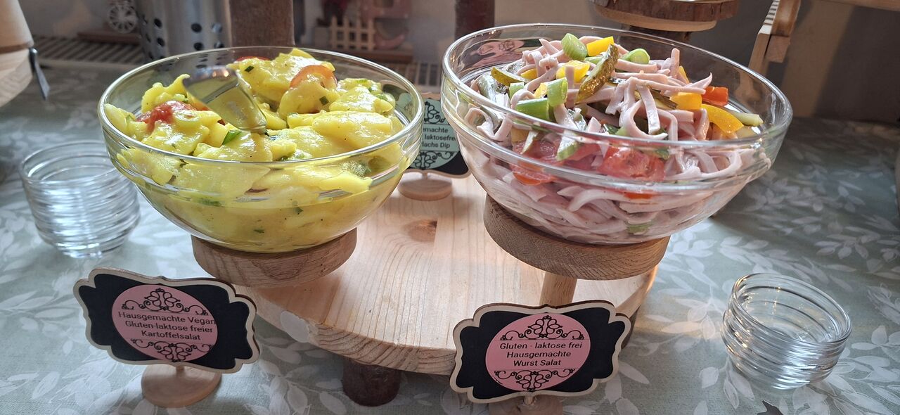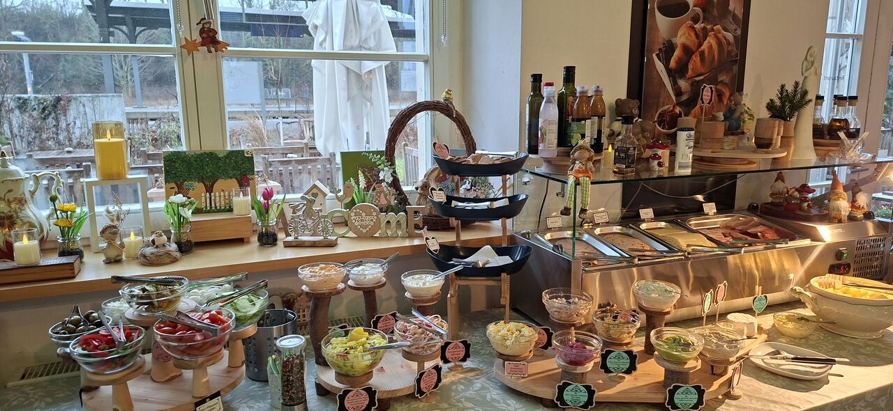 Freuen Sie sich auf ein einzigartiges Tagesbuffet, hausgemachte Kuchen und Torten sowie eine außergewöhnlich große Auswahl an veganen, glutenfreien und laktosefreien Speisen. Bei uns steht Genuss für alle im Mittelpunkt.
