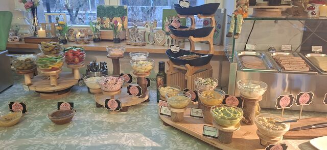Ein etwas außergewöhnliches Frühstücksbuffet mit gluten- und laktosefreien Optionen sowie veganen Optionen am Mittwoch, Donnerstag, Freitag, Samstag und Sonntag